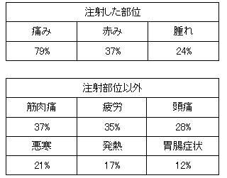 多くの方に注射部位の痛みや腫れが現れます。痛みに関しては、冷却や一般的な鎮痛薬を使用することもありますが、主治医の先生とご相談ください。